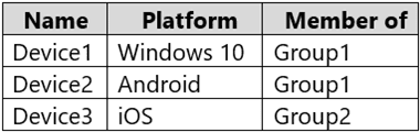 You have devices enrolled in Microsoft Intune as shown in the following table.