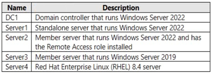 You have the on-premises servers shown in the following table.