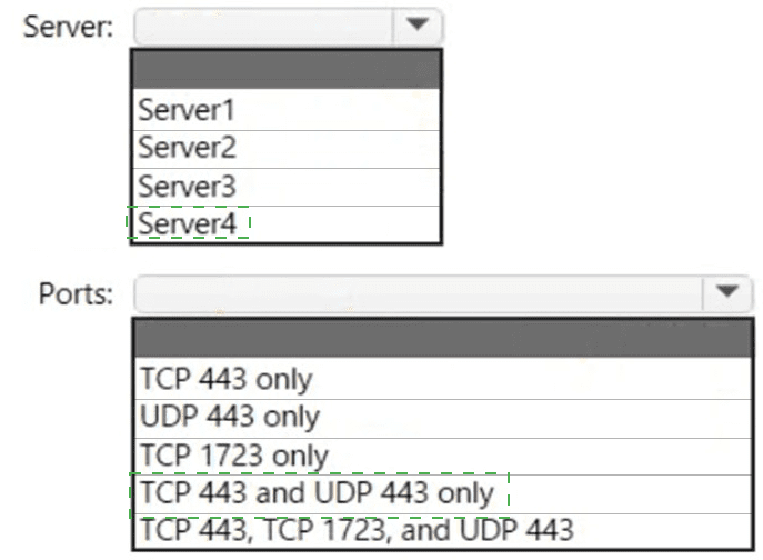 To which server can you deploy a Tunnel Gateway server, and which inbound ports should be allowed on the server to support Microsoft Tunnel connections? To answer, select the appropriate options in the answer area.