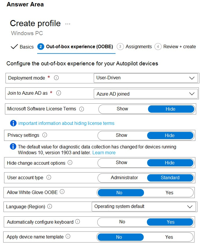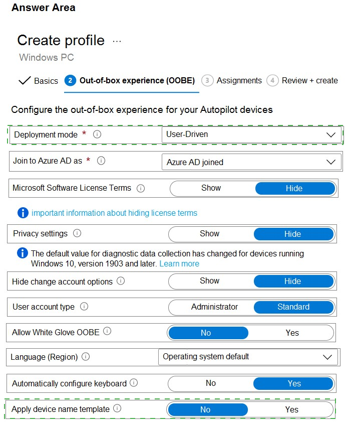 Which two settings should you configure? To answer, select the appropriate settings in the answer area.