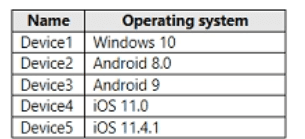 You have an Azure AD tenant named contoso.com that contains the devices shown in the