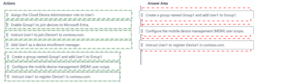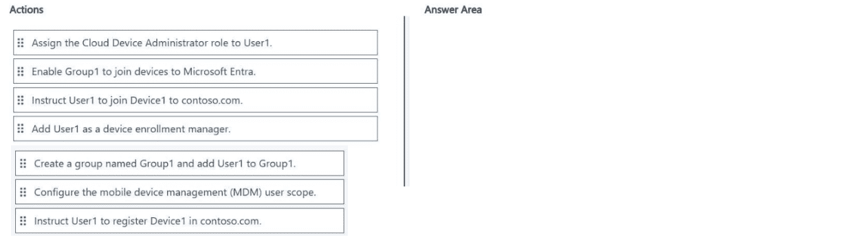 You have a Microsoft 365 E5 subscription that is linked to a Microsoft Entra tenant named contoso.com. The subscription contains a user named User1 and a new Windows 11 device named Device1.
