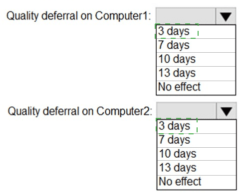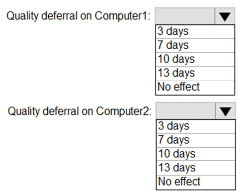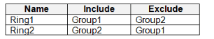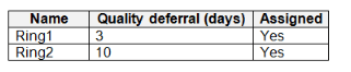 Windows 10 update rings are defined in Intune as shown in the following table.