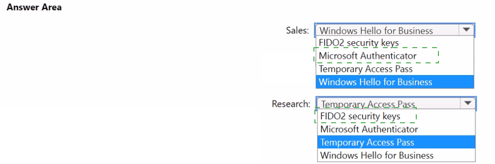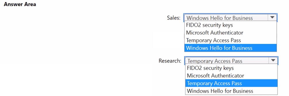 Which authentication method should you use for each department? To answer, select the