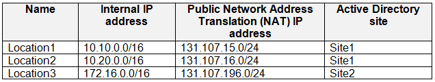 Your network contains an on-premises Active Directory domain that contains the locations
