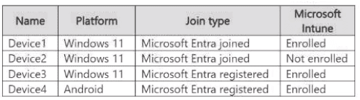 You have a Microsoft Entra tenant that contains the devices shown in the following table.