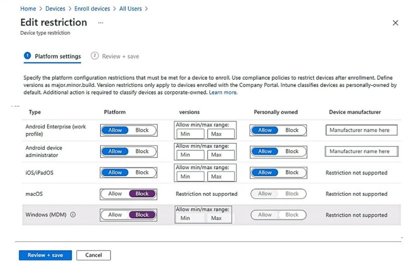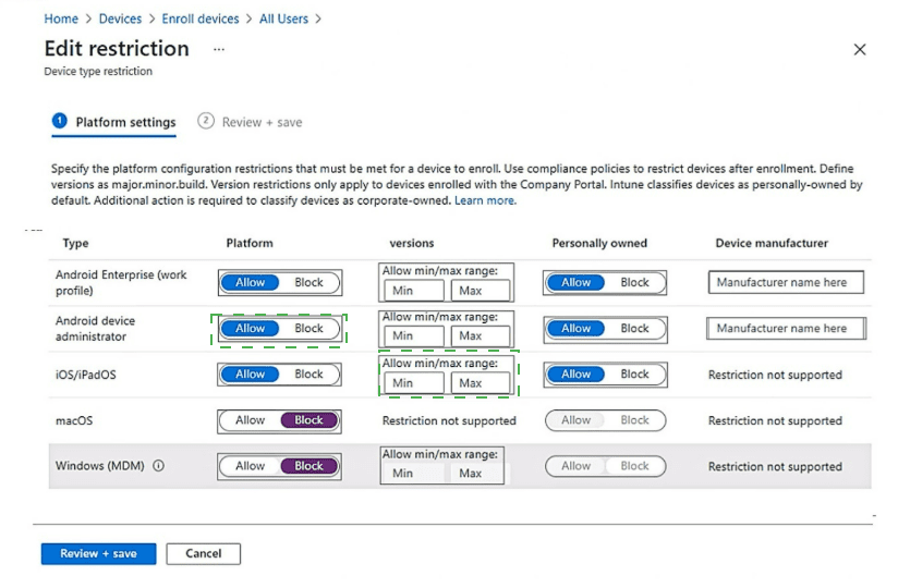 You need to ensure that users can only enroll devices that meet the following requirements: