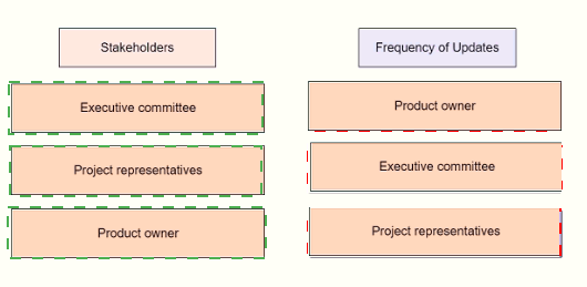 Match the stakeholders on the left with the appropriate frequency for updates.
