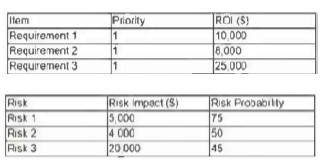 The tables show the requirements for an agile project with the anticipated return on