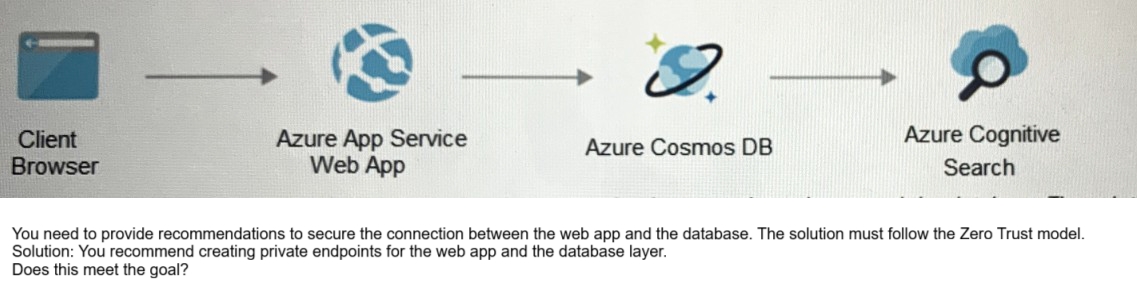 Cosmos DB, or Azure Web App, use the PrivateLink connectivity option to ensure all data