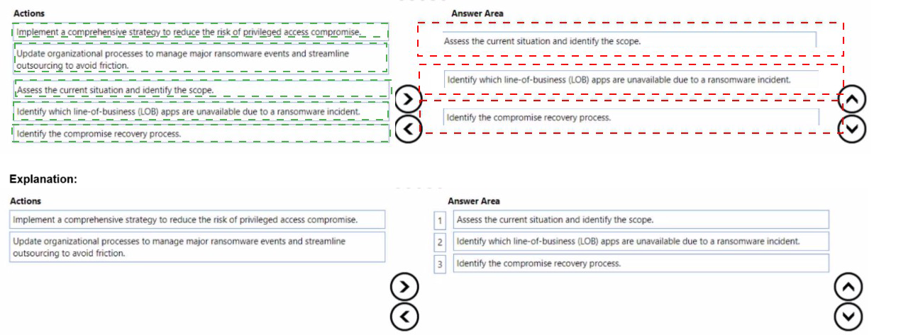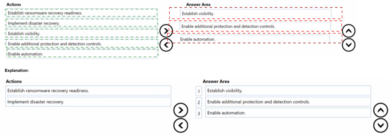 answer, move the appropriate actions from the list of actions to the answer area and